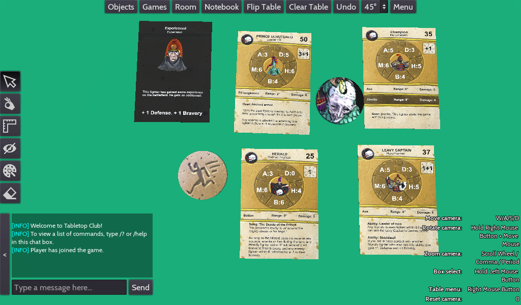 As for this, it’s a simple card and token pack to allow those who get the rules which are fairly simple to be able to play it online in Tabletop club. So far there’s four warbands, i’d add more but I want to gauge people’s interests before I do something more like make a make the character stands for gameplay. No idea how to do that yet. I’ll likely still update this but overall, I’m an amateur who’s doing this because I got nothing better to do right now.